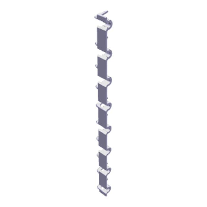 Dieser Abstandshalter gehört zum oberen Korb des Geschirrspülers. Aus dem langen, dünnen Bauteil ragen mehrere kleine Stacheln hervor, mit denen Geschirrteile während des Spülprogramms getrennt und gesichert werden können.
